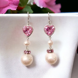 Heart CZ Crystal & Freshwater Pearl Wrapped in Sterling Silver