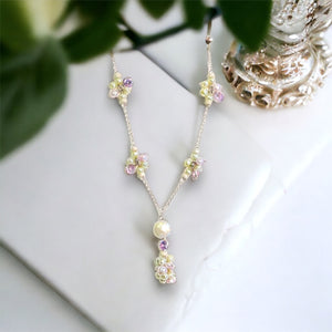 Genuine Pearls, Lavender Crystals, and Coin Pearl Pendant in Sterling Silver