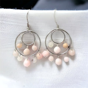 Natural Pink Opal and Moonstone Earrings in Sterling Silver