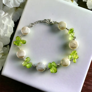 Coin Pearl and Peridot Briolette Bracelet in Sterling Silver