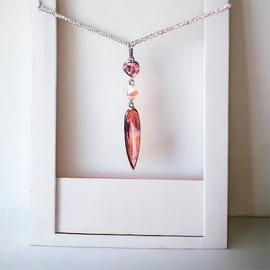Pink Crystal with Freshwater Pearl Pendant in Sterling Silver