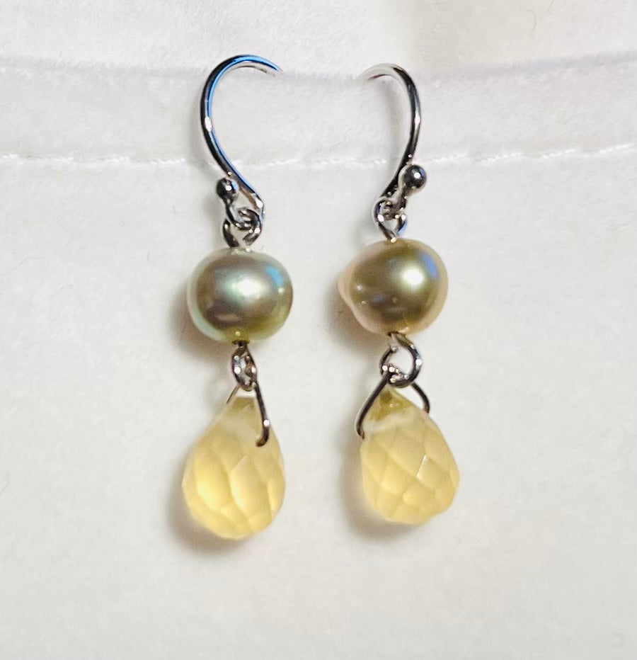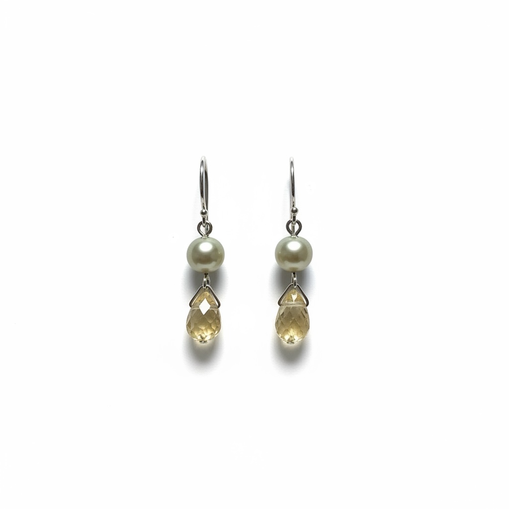 These charming earrings feature lustrous freshwater pearls paired with delicate yellow briolette stones, creating a soft, elegant glow. Handcrafted in sterling silver, they offer a graceful 1¼-inch drop—perfect for adding a touch of timeless beauty to any look.