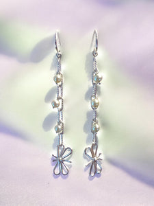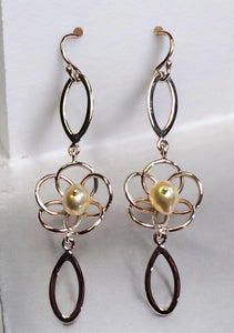 Flower with Freshwater Pearl Nugget Earring in Sterling Silver