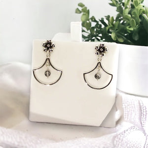 Flower with Genuine Moonstone Earring Dangle in Sterling Silver