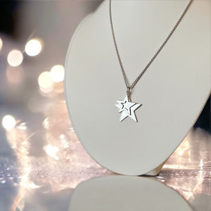 Double Star Cutout Pendant in Sterling Silver - 18 Inch chain