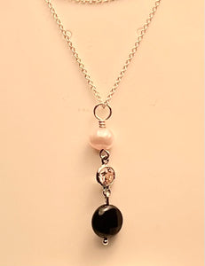 Freshwater Pearl, Lavender CZ, and Onyx Pendant in Sterling SIlver
